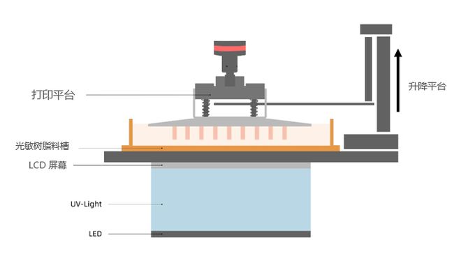 LCD在3D打印技術中是新興技術,近幾年開始流行起來,以DLP為基礎研究開發,成本大大降低入手門檻觸手可及,精度媲美DLP,它使用紫外線照射固化樹脂作為成型方式。LCD 3D打印機工作原理是利用液晶屏LCD成像原理,在計算機及顯示屏電路的驅動下,由計算機程序提供圖像信號,在液晶屏幕上出現選擇性的透明區域,紫外光透過透明區域,照射樹脂槽內的光敏樹脂耗材進行曝光固化,每一層固化時間結束,平臺托板將固化部分提起,讓樹脂液體補充回流,平臺再次下降,模型與離型膜之間的薄層再次被紫外線曝光。由此逐層固化上升打印成精美的立體模型。所以通過這種原理成像的LCD 3D打印機,我們也叫“LCD 3DPrinter。
